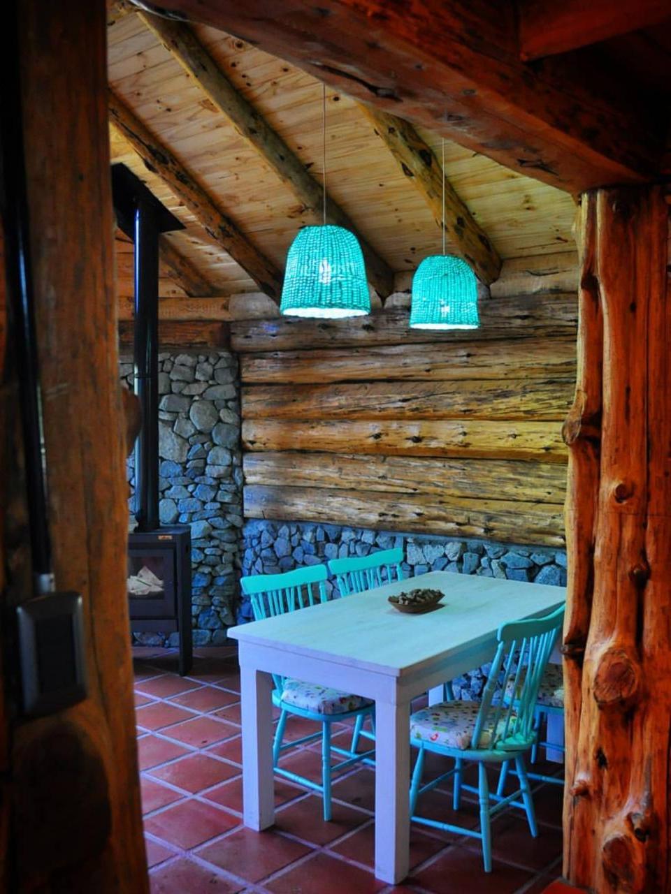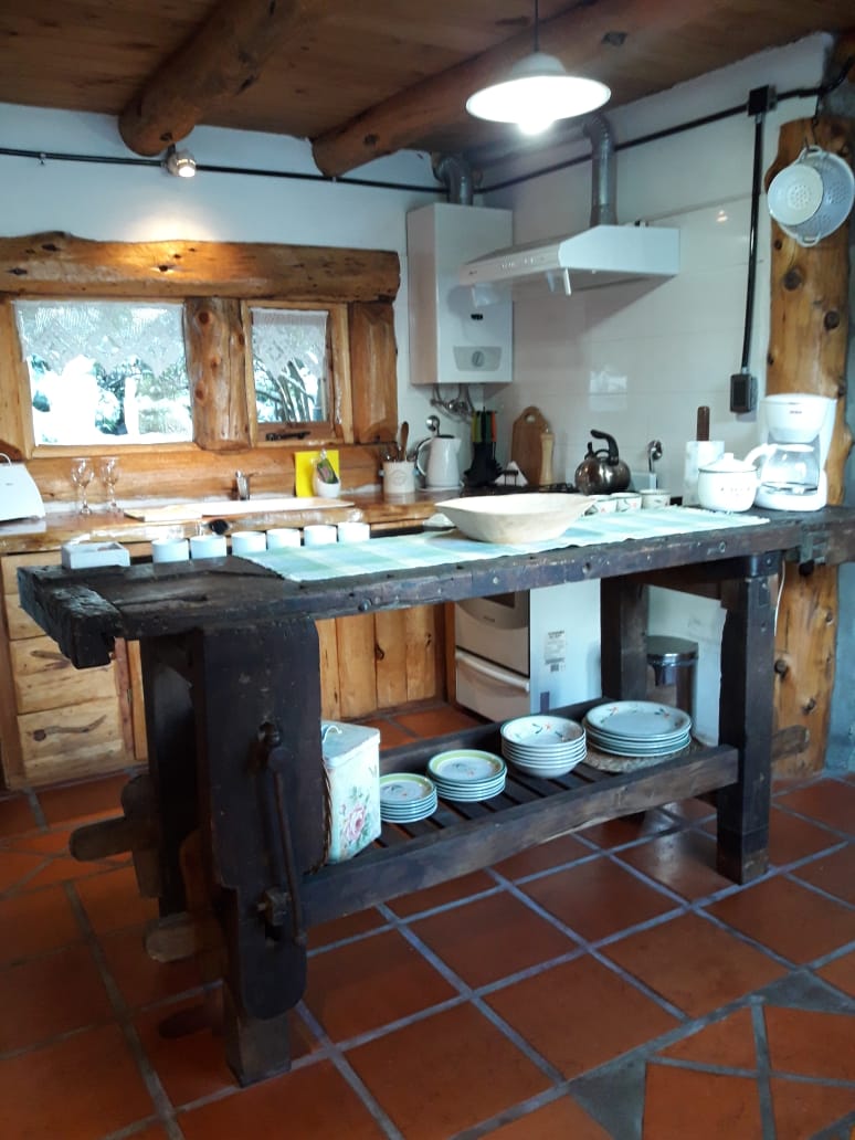 Cabaña para 5 personas, tiene una superficie de 100 m², distribuidos de la siguiente manera,la planta baja cuenta con un hall frío, cocina totalmente equipada, comedor y living con estufa a leña, habitación y baño.