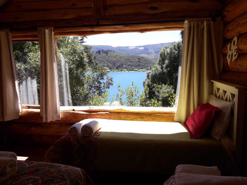En la planta alta ofrecemos una habitación matrimonial con baño en suite y un pequeño hall. Desde cualquiera de sus ambientes se disfruta el lago Aluminé y su arquitectura se mimetiza con el bosque que la rodea.